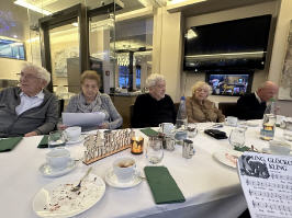 Im schön geschmückten Wintergarten des Lokals gab es in vorweihnachtlicher Atmosphäre Kaffee und Kuchen. Eine Weihnachtsgeschichte wurde wieder von Gisela Wabbels vergetragen. Dazu wurden Weihnachtslieder gesungen.