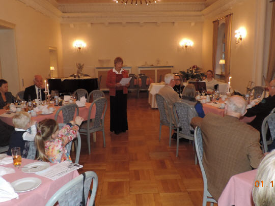 Am Sonntag, den 5. Dezember, fand wieder unsere traditionelle Adventsfeier statt. 35 Teilnehmer trafen sich bei Kaffee, Kuchen und Kerzenlicht in der romantischen Umgebung des Seeschlosses Monrepos in Ludwigsburg. Die Kinder wurden beschenkt, Fräulein Lühmann sorgte für die musikalische Umrahmung und eine Tombola fand großen Anklang.
