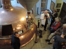 In Alpirsbach ist die Vergangenheit allgegenwärtig. Zum Beispiel im Brauereimuseum der Brauerei Alpirsbacher, wo wir uns nach dem Besuch des Klosters tiefe Einblicke in die traditionelle Kunst des Bierbrauens verschafft haben. Bei einer hochinteressanten Führung durch Bruno Fischer haben wir anhand von Exponaten, historischen Maschinen und Werkzeugen ganz anschaulich erfahren, wie der geheimnisumwobene Brauprozess vonstatten geht und wie sich das Brauwesen im Laufe der Zeit entwickelt hat. Im historischen Sudhaus, in dem auch Trauungen stattfinden, haben wir uns umgesehen und uns anschließend zu einem frischen Alpirsbacher Klosterbräu vom Fass einladen lassen. Dazu gab es ein Vesper mit einem Paar Original Schwarzwälder Bauernbratwürsten und Bierlaugengebäck und einem Bierschnaps.