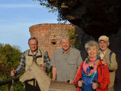 12 Teilnehmer erlebten am 23. Oktober 2016 einen schönen Herbstag in der Südpfalz. Dieses Mal stand die Besichtigung der "Burg Berwartstein" in Erlenbach bei Dahn auf dem Programm. In lockerer Rede brachte ein mittelalterlich gekleideter Führer das Geschehen auf dieser heute noch bewohnten Burg nahe, hier besonders die (Un)taten des Raubritters Hans von Trotha (Burgherr ab 1480). Nach dem Mittagessen im Rittersaal folgte ein Waldspaziergang um den nahe gelegenen "Seehof-Weiher". Zum Abschluss gab es noch Kaffee und Kuchen im "Kiosk am Seehof".