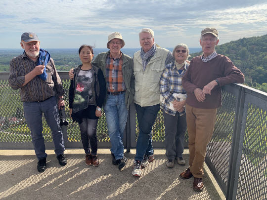 Der diesjährige Ausflug in der Pfalz führte uns hoch hinaus. Vom Wanderparkplatz „Hahnenschritt“ an der Kalmitstraße erreichten wir in ca. 1,5 km Entfernung die Pfälzerwald-Vereins-Hütte „Hohe-Loog-Haus“ auf 619 m Höhe. Bei sonnigem Herbstwetter konnten wir dort draußen rasten und uns mit Pfälzer Spezialitäten stärken. Nach dem Rückmarsch ging es mit dem Auto weiter zum „Hambacher Schloss“. Hier konnte uns anschaulich Hintergrundwissen zu der dort im Jahr 1832 stattgefundenen Großveranstaltung „Hambacher Fest“ vermittelt werden. In leicht geschrumpfter Gruppenstärke (noch 7 Personen) fand dieser Tag in der gemütlichen Weinstube „Mohre Jule“ in Hambach seinen Ausklang.