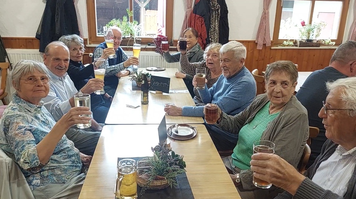 Danach wurden im Waldhaus "Drei Buchen", wie schon im letzten Jahr, Pfälzische Spezialitäten zum Mittagessen eingenommen. Eine geplante Besichtigung der Burgruine Meistersel musste wegen Regens auch wieder ausfallen. Die gute Laune hat dadurch aber keinen Schaden genommen – im Gegenteil. Bei Kaffee und Kuchen dauerte die angeregte Unterhaltung an bis zur Schließung des Lokals um 17:00 Uhr. Dank gilt dem Organisator, Herrn Heinz-Eugen Mohr.