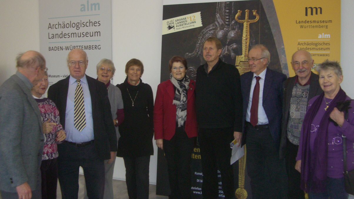 Das Jahr 2013 startete mit einem Besuch der großen Landesausstellung "Die Welt der Kelten - Zentren der Macht - Kostbarkeiten der Kunst" in Stuttgart am 09. Januar. Aufgrund der hohen Nachfrage - über 30 Interessierte folgten unserer Einladung - wurden 2 parallele Führungen organisiert. Bestaunt wurden beeindruckende Exponate aus Museen in ganz Europa - und auf spektakuläre Neufunde. Die wohl größte Keltenausstellung seit dreißig Jahren widmet sich der Bedeutung dieser Kultur als eine der prägenden Kräfte der europäischen Geschichte. In der Kunsthalle und im Alten Schloss werden mehr als 1.300 herausragende Originalfunde und in Deutschland zum Teil noch nie gezeigte Einzelstücke in zwei großen Themenblöcken präsentiert. Das Bild zeigt einen Teil der Teilnehmer: Herr Kolb, Frau und Herr Eckhard, Frau Kolb, Frau Wabbels, Frau und Herr Schindler, Herr Holzner, Frau und Herr Härle (v.l.n.r.).